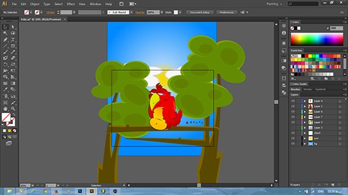 خب همونطور که گفتم برای اجرای اسکچ کاراکتر کارتونی مون میتونیم از نرم افزار های مختلف استفاده کنیم . من تصویر رو وارد نرم افزار مورد نظر میکنم و با ابزار های مختلف شکلم رو ایجاد میکنم . بعد از اجرا سراغ رنگ آمیزی میرم . برای بهتر نمایش دادن کاراکتر کارتونی میتونیم محیط رو برای کاراکترمون به وسییله آبجکت هایی مثه درخت و آسمون و… زیبا و جذاب کنیم . به ترتیب تصاویر زیر رو میتونید ببینید .